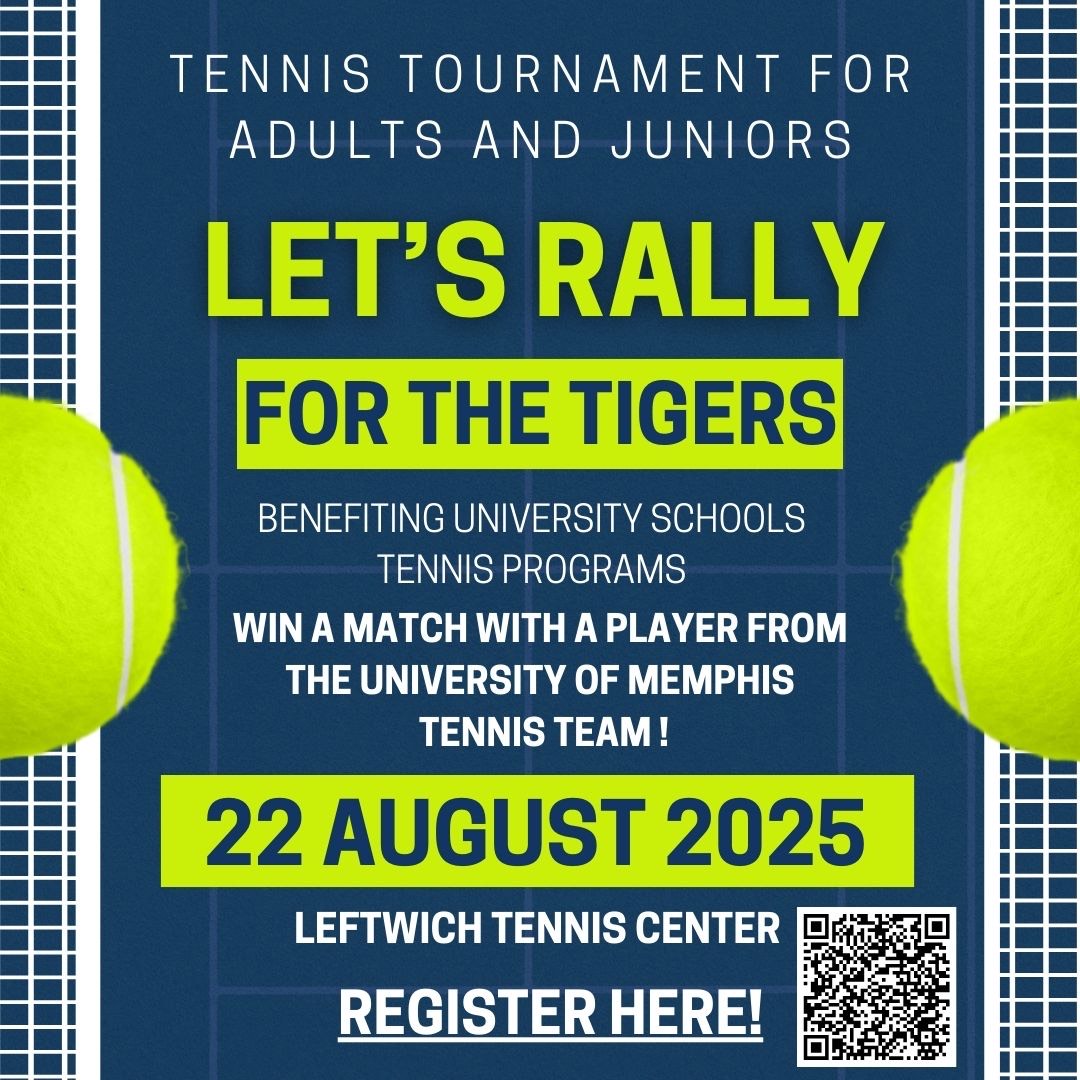 Join us for an exciting evening of competition and community at the Rally For The Tigers Tennis Tournament! This fun-filled event brings together tennis lovers of all skill levels to raise funds in support of the University Schools Tennis Programs.